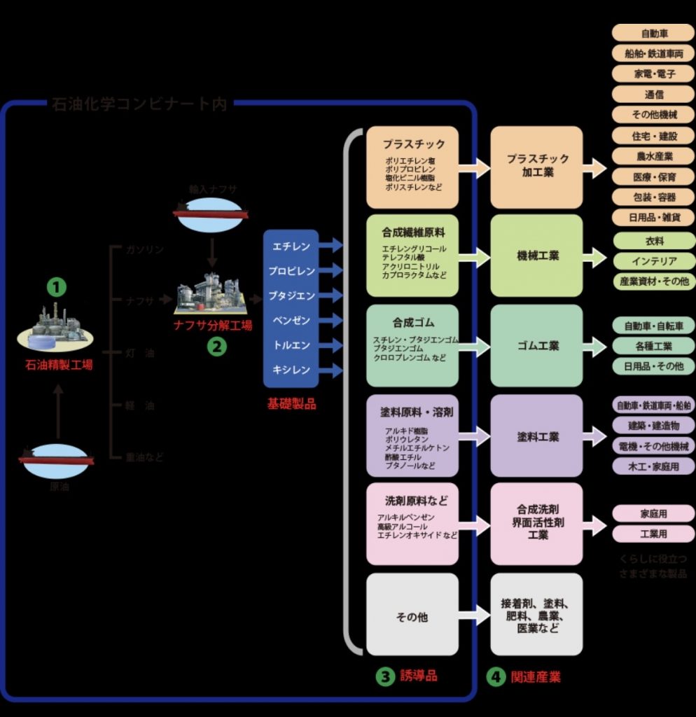 これらはすべて、石油を精製した「ナフサ」が原料です。