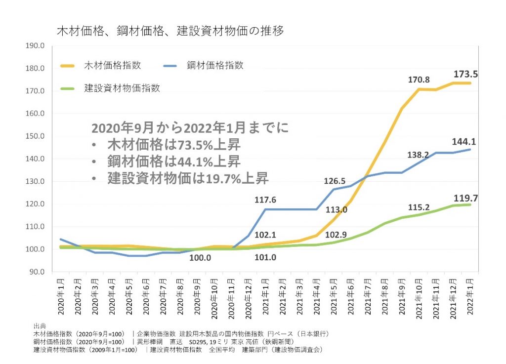建材価格が40〜80%上昇するケースも出てきています。
